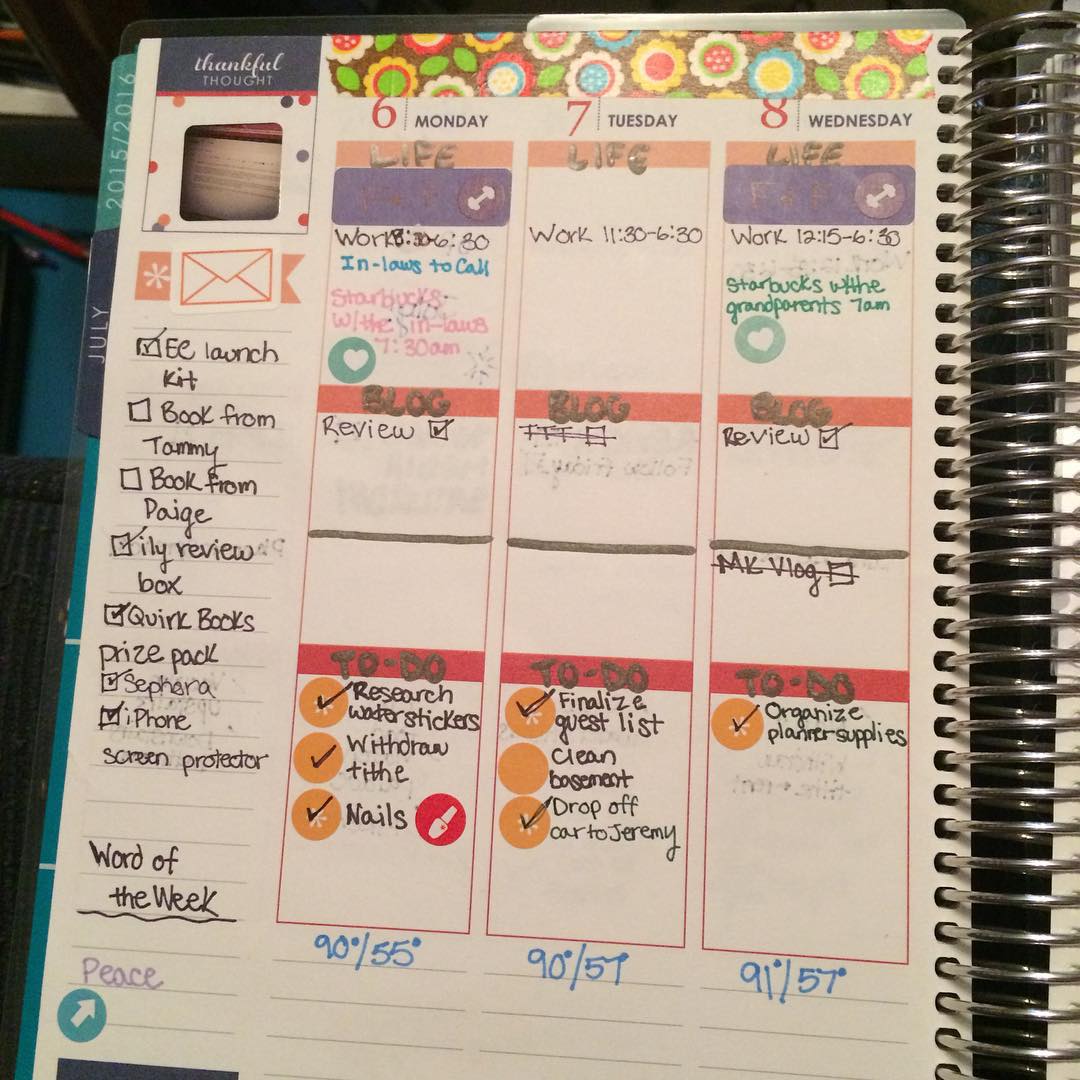 Overall, I think this week went much better planning-wise. I snagged one of the new washi tapes from Target and got my EC launch kit with the new markers and stickers, so this next week will probably be a bit more colorful. Be looking for that!